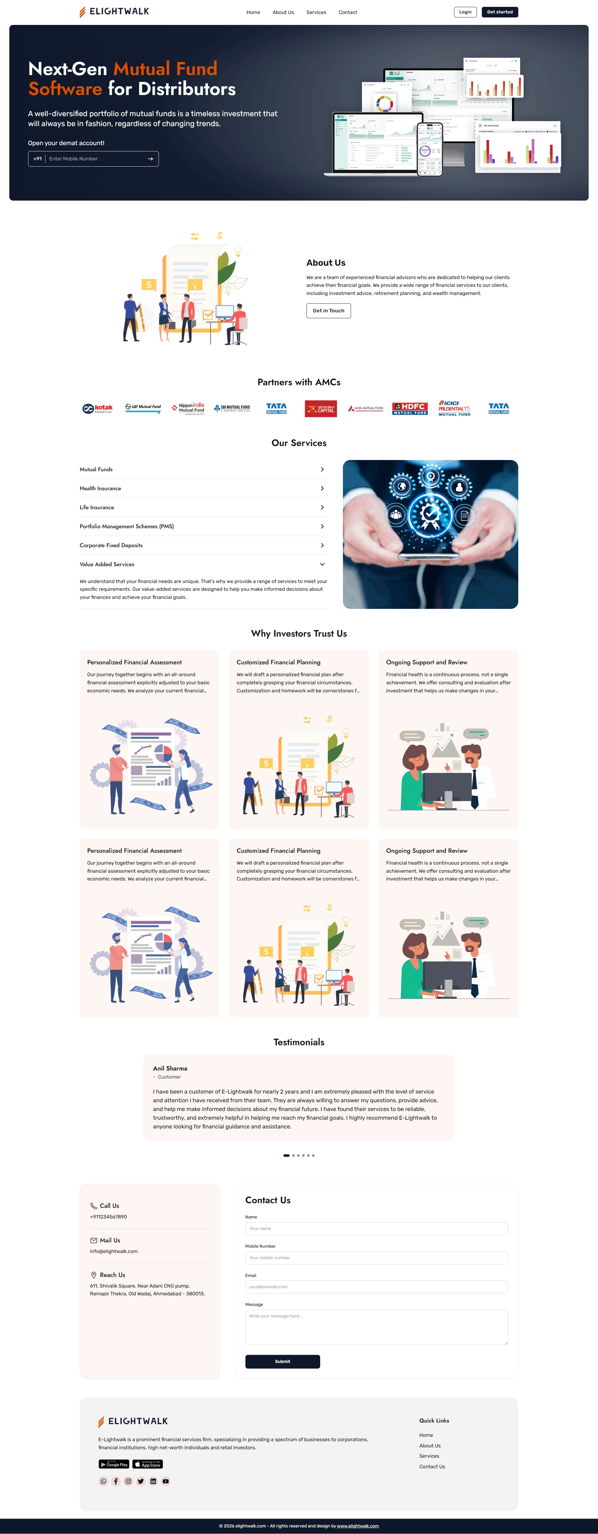 A professional website is essential for Mutual Fund Distributors. Investors increasingly research advisors online before initiating contact. A strong financial website enhances your credibility, builds trust, and positions you as a reliable expert in mutual fund advice and financial planning.